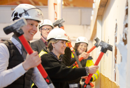 Spaden i marken…Nej, det blev istället släggan i väggen när det ”första spadtaget”-ceremonin hölls för nya Maxi ICA Stormarknad i Gunnesbo i Lund torsdag 30 mars. Nuvarande ICA Kvantum byggs ut och konverteras till Maxi ICA Stormarknad med planerad invigning senare delen av 2024.